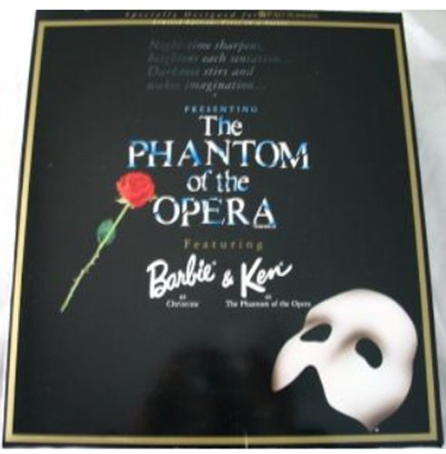 Who better to portray the romance and drama of The Phantom of the Opera than Barbie and Ken dolls! The first dolls in an exciting new collection created exclusively for FAO Schwarz, Barbie and Ken dolls wear fashions that capture the essence and details of these dramatic costumes. Barbie doll as Christine wears a romantic white-on-white print bridal gown lavishly trimmed in lace. A sheer veil adorns her long, auburn hair. As The Phantom of the Opera, Ken doll is very dramatic in black evening clothes, opera cape and white half-mask.##))
