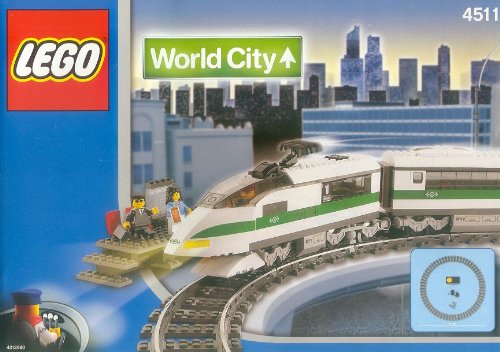 LEGO commuters rely on this lightning-fast locomotive to get them to work on time. Add this high-speed train to your LEGO town to keep passengers moving from place to place. Complete set includes engine and passenger car, train station platform, three mini-figures, accessories and more. Also includes 16 curved rails to create a two-foot circle, as well as a 9-volt Speed Regulator and motor. Contains 333 LEGO pieces.##))